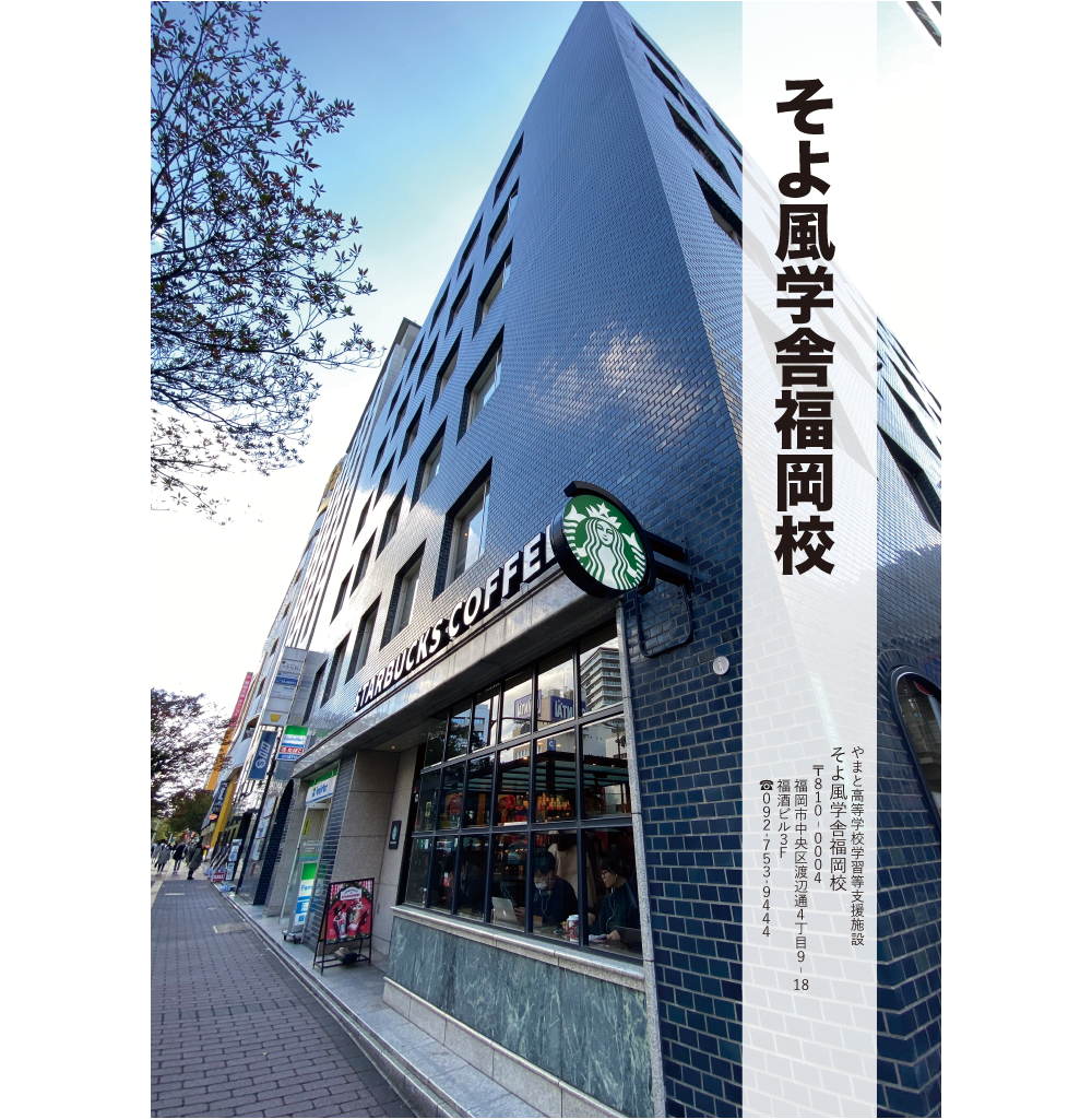 そよ風学舎福岡校は渡辺通と国体道路が交差する「渡辺通4丁目交差点」近くです。1階にはスターバックスコーヒーとファリミーマートがあり、紺色のタイル張りの福酒ビル3階。