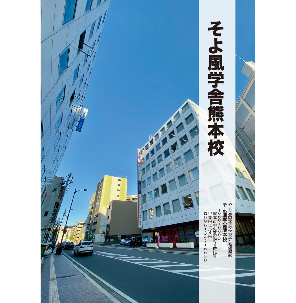 熊本校は甲斐田ビル4階、その下3階にやまと高等学校熊本事務所があり、サポート体制も万全です。